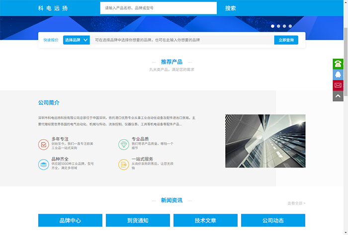 科電遠(yuǎn)揚(yáng)新的主網(wǎng)站秉承了簡約、清新的風(fēng)格,視覺效果極好,可以瞬間給訪問者留下非常深刻的印象。網(wǎng)站功能應(yīng)用則極其強(qiáng)大,有很好的邏輯架構(gòu),方便客戶節(jié)省寶貴時間快速搜索到最為關(guān)心的信息,精確找到自己的需求。另外,網(wǎng)站的布局和結(jié)構(gòu)也非常合理,盡管數(shù)據(jù)龐大,但絲毫不會影響到網(wǎng)站的訪問速度。因此,整合了眾多現(xiàn)代化元素和技術(shù)手段的新網(wǎng)站基本代表了科電遠(yuǎn)揚(yáng)嶄新的形象和實(shí)力,也給廣大客戶帶來了非常好的訪問體驗!另外新版本官網(wǎng)有好的美觀和用戶體驗,網(wǎng)站有電腦端和移動端,站內(nèi)搜索功能也做得比較強(qiáng)大,讓每個頁面都可以快速搜索站內(nèi)資源,當(dāng)然新網(wǎng)站的內(nèi)容還在緊張陸續(xù)更新中,盡請期待!