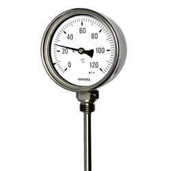 該測量裝置是金屬膨脹溫度計中的一種,其測量原理是基于將固體的不同線膨脹機(jī)械地傳遞給指針這一事實。雙金屬溫度計基本上由兩塊金屬板的螺旋帶組成,這些金屬板牢固地疊在一起,熱膨脹盡可能不同。當(dāng)溫度發(fā)生變化時,螺旋會彎曲并移動與其牢固連接的指針。他們?yōu)槟峁└鞣N設(shè)計和各種連接選項的雙金屬溫度計。該系列包括軸向和徑向變體的標(biāo)準(zhǔn)和工業(yè)版本,以及化學(xué)版本,您還可以通過可以旋轉(zhuǎn)和旋轉(zhuǎn)90°的連接獲得化學(xué)版本。