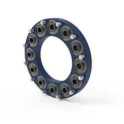 Layrub系列是一個(gè)歷史悠久但仍然獨(dú)特的設(shè)計(jì),基于十二個(gè)標(biāo)準(zhǔn)塊的范圍。它通常用于覆蓋高達(dá)64 kNm額定扭矩的中低功率范圍。這些塊可以并聯(lián)使用,從而實(shí)現(xiàn)緊湊性并使聯(lián)軸器適用于高速運(yùn)行,也可以串聯(lián)使用以提供扭轉(zhuǎn)軟聯(lián)軸器并適應(yīng)大的不對(duì)中。聯(lián)軸器設(shè)計(jì)采用預(yù)壓縮橡膠塊排列在機(jī)加工鋼外殼中。這些塊平行安裝,每個(gè)法蘭有8、9、10或12個(gè)一組。標(biāo)準(zhǔn)系列的功能可以通過客戶配置進(jìn)行擴(kuò)展,以滿足特定的應(yīng)用要求。這包括軸組件的設(shè)計(jì),包括固定長(zhǎng)度和伸縮單元。海洋和鐵路行業(yè)利用彈性聯(lián)軸器來(lái)吸收沖擊載荷、降低噪音和振動(dòng),并提供扭轉(zhuǎn)振動(dòng)的阻尼和控制。在發(fā)動(dòng)機(jī)測(cè)試和測(cè)功機(jī)應(yīng)用中,多點(diǎn)聯(lián)軸器適應(yīng)高輸入速度,同時(shí)為應(yīng)用阻尼要求提供免維護(hù)解決方案。